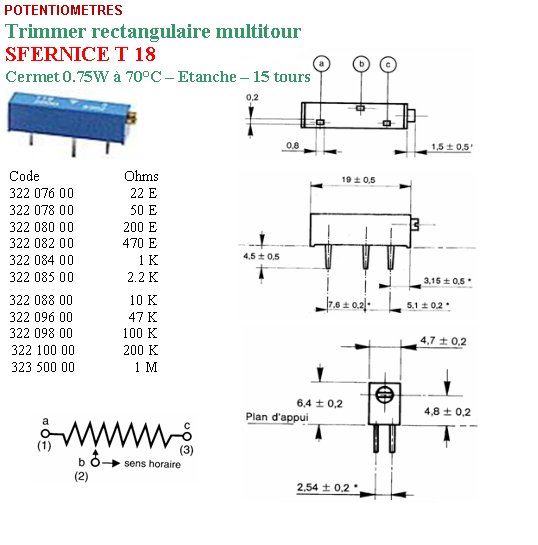 Trimmer T18 1 Kohms CERMET 10% 0.5 Watt 18 Tours