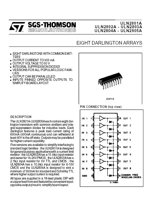 ULN2804AN EIGHT DARLINGTON ARRAYS DIP18