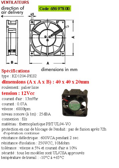 Ventilateur 12 Volts 40 x 40 x 20 mm