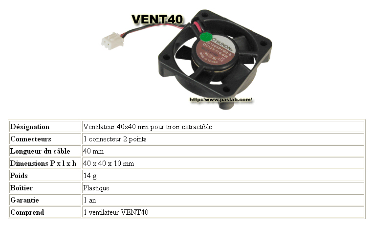 VENTILATEUR 40 x 40 x 10 mm avec connecteur RACK HD125A66