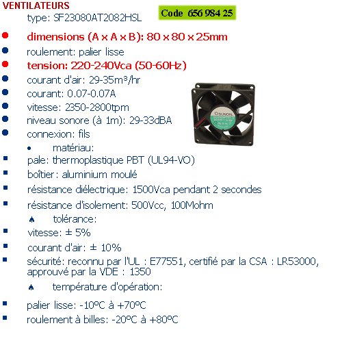 VENTILATEUR 80 x 80 x 25 mm 240V