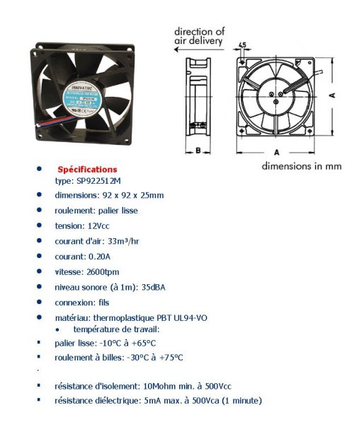 VENTILATEUR 92 x 92 x 25 mm 12V