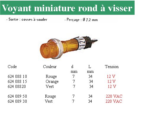 Voyant rond rouge à visser 12 Volts continu